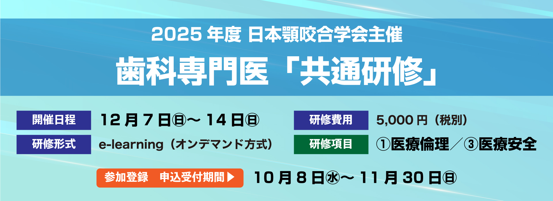 2025年度 日本顎咬合学会主催 歯科専門医「共通研修」のご案内