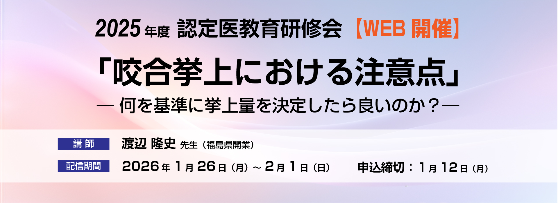 2025年度 日本顎咬合学会 WEB認定医教育研修会のお知らせ